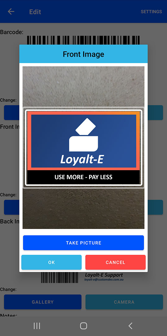 You can either allow the “Camera” permission and easily scan barcodes or take photos of your cards on the fly, or simply just use your devices gallery app, the choice is yours.